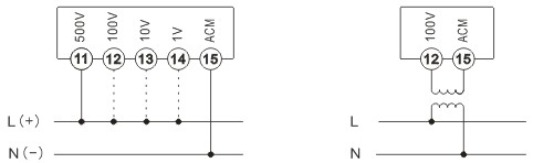 交(直)流電壓≤500V時直接接入 交流電壓>500V時經(jīng)互感器接入